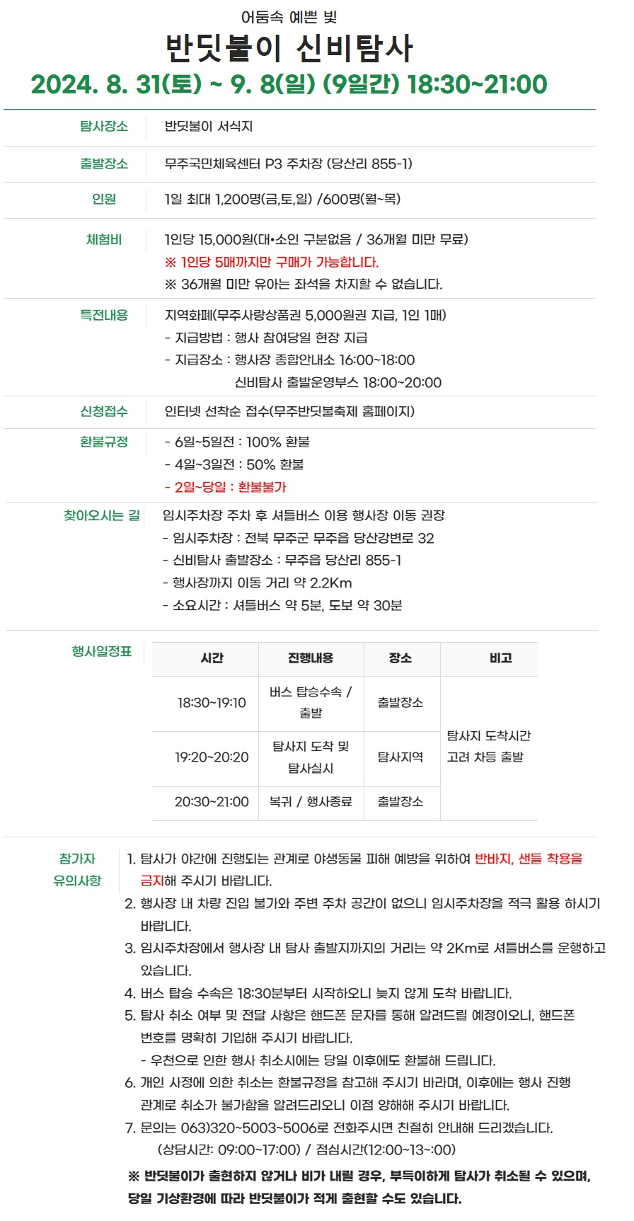 무주 어둠속 예쁜 반딧불 축제 일정표