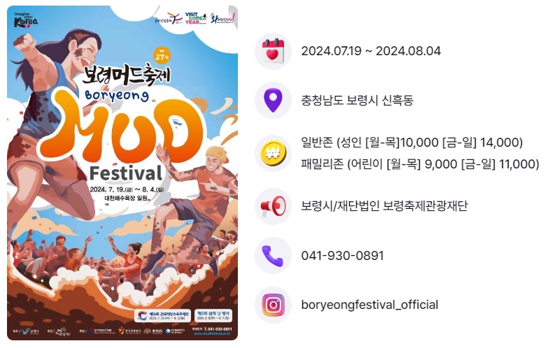 보령 머드 축제는 충청남도 보령시 대천해수욕장에서 매년 7월 중순에 열리는 축제로, 다양한 머드 체험과 이벤트로 전 세계 관광객들에게 큰 인기를 끌고 있습니다. 1998년 시작된 이 축제는 이제 전통적인 여름 축제로 자리 잡았으며, 수많은 사람들이 이 축제를 즐기기 위해 보령을 방문합니다.